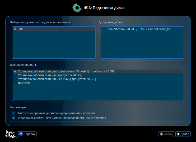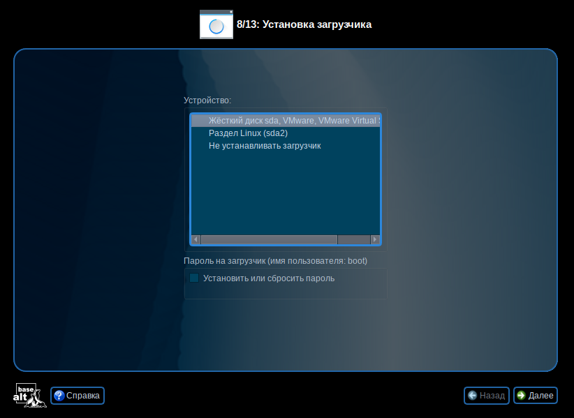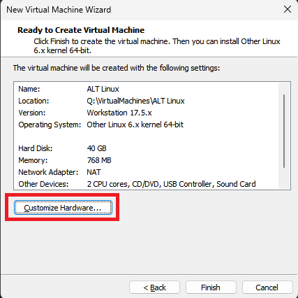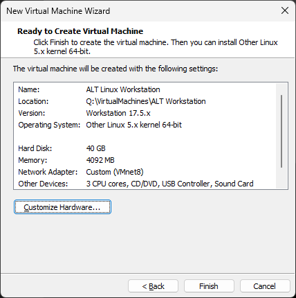 Цель работы: установить Alt Linux Workstation K в VMware Workstation Pro.