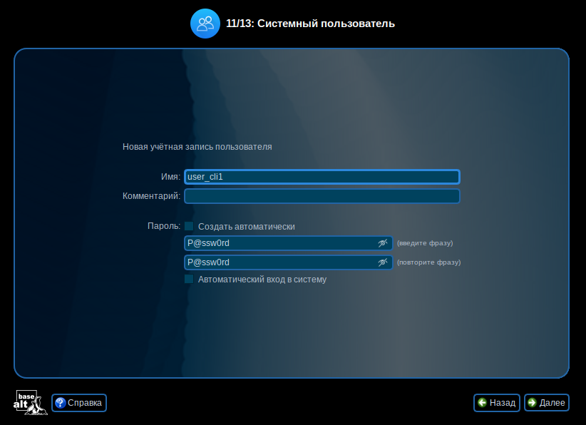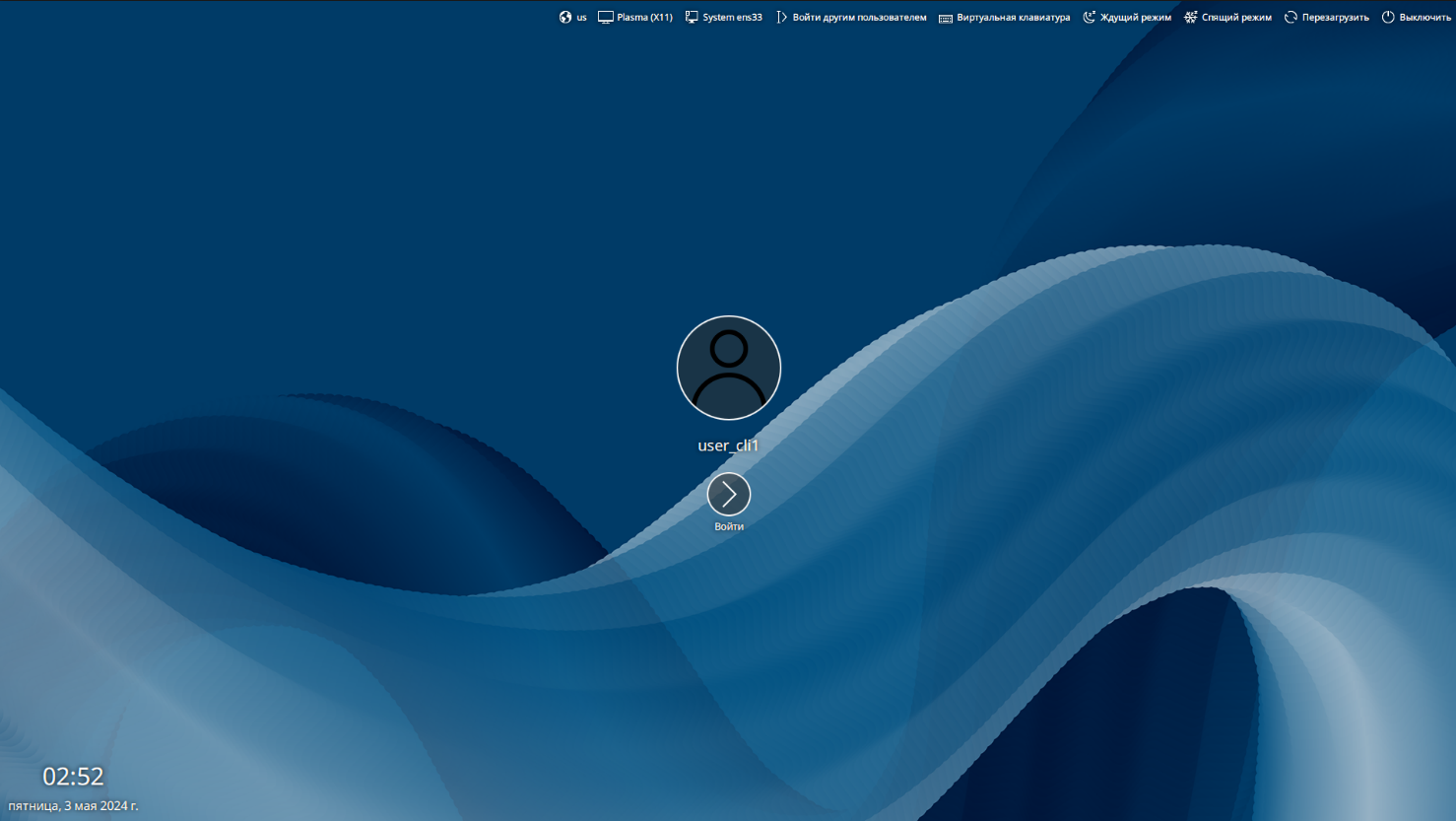 После завершения процесса установки авторизуйтесь под учетной записью user_cli1