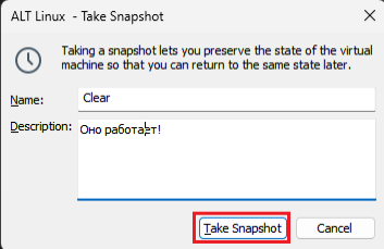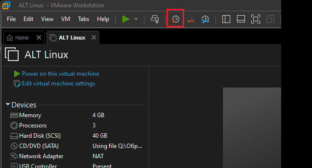 Так как вы любите убивать ОС, следуйте следующим шагам, чтобы сделать снимок текущего состояния ВМ (к нему можно будет откатиться, если вы что-то сломаете).