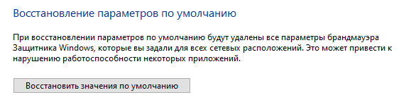 В случае, если вы сделали какие–то некорректные правила или что–то пошло не так, можно вернуть Брандмауэр к параметрам, которые были заданы при установке системы.