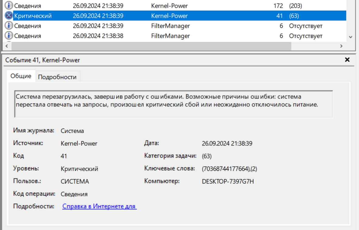 Внизу, в поле «Подробности», вы можете также увидеть ссылку «Справка в Интернете», которая передает информацию о событии на сайт Microsoft и, по идее, должна отображать информацию о данном событии. Однако, в большинстве случаев вы увидите сообщение о том, что страница не найдена.