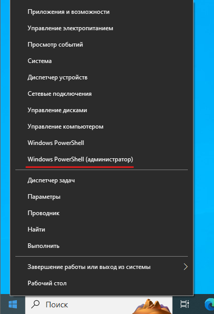 Нажмите ПКМ на меню ПУСК и откройте PowerShell от имени Администратора.