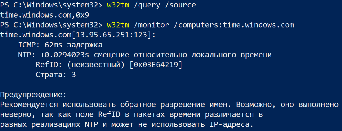 Если мы проверим какой NTP сервер используется по умолчанию, увидим time.windows.com (NTP Microsoft):