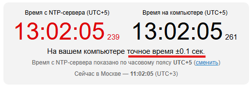 Теперь у вас должно быть точное время, чтобы это проверить снова откройте сайт NTP SERVERS: