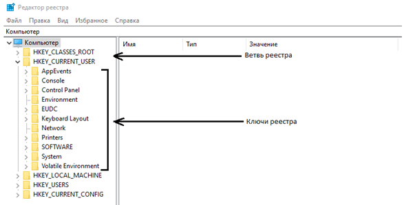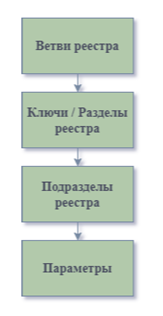 Реестр Windows – многоуровневая архитектура, включающая в себя четыре логических компонента: