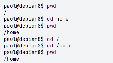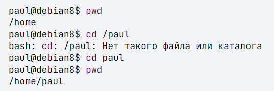 При нахождении в директории /home вам придется ввести команду cd paul вместо команды cd /paul для перехода в поддиректорию paul текущей директории /home.