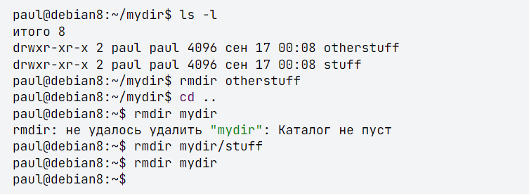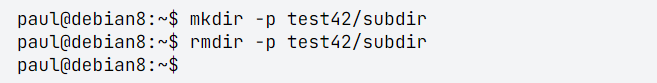 И по аналогии с параметром mkdir -p, вы также можете использовать утилиту rmdir для рекурсивного удаления директорий.