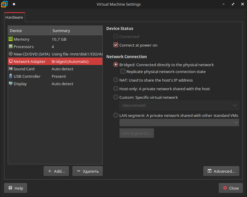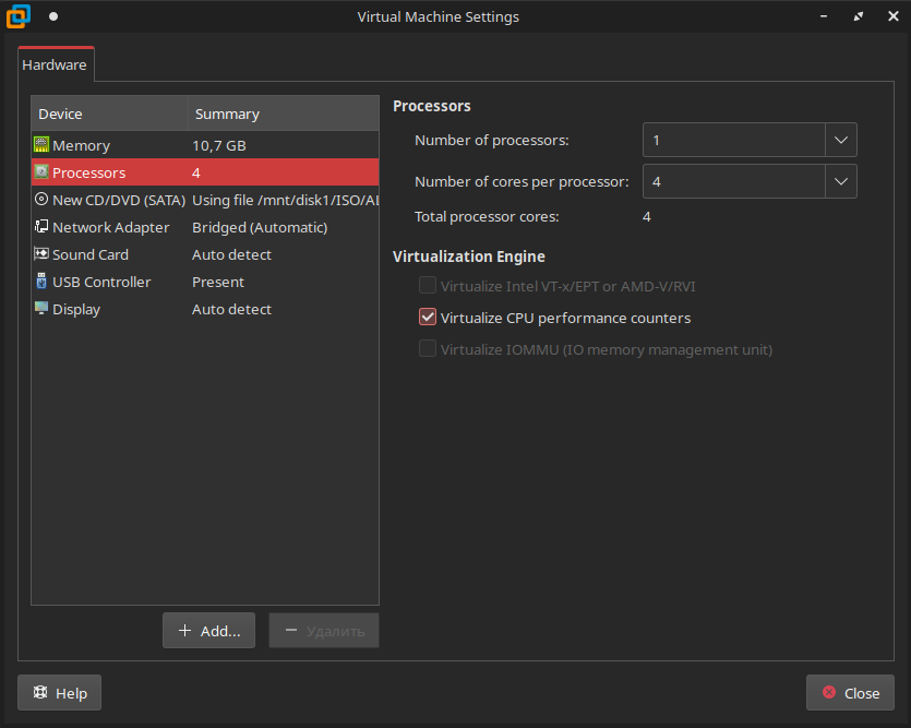 2. Приведите настройки ВМ к следующему виду и запустите ALT-V: