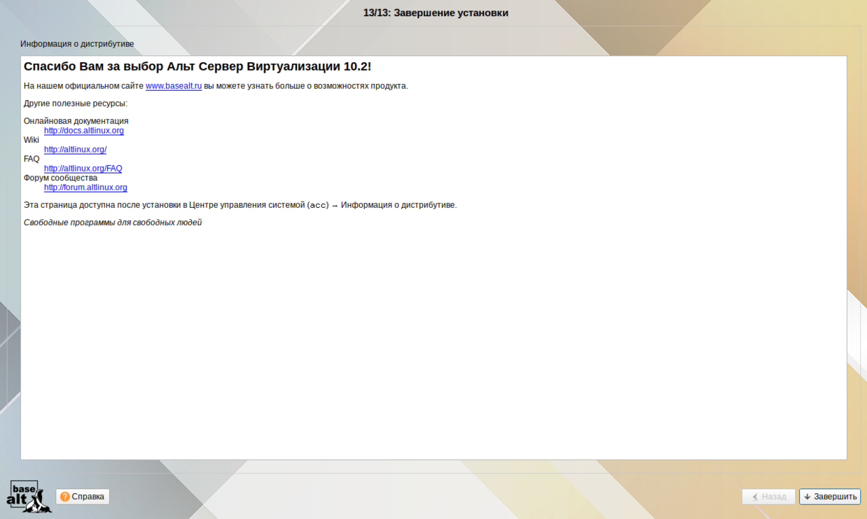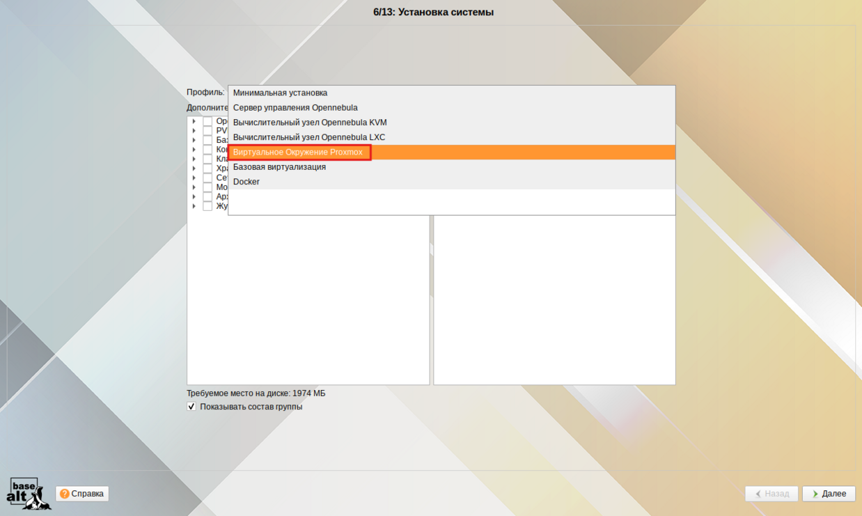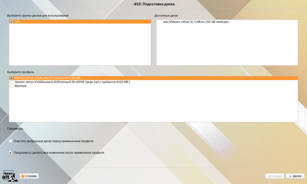 Альт Сервер Виртуализации предоставляет 4 основных типа установки: