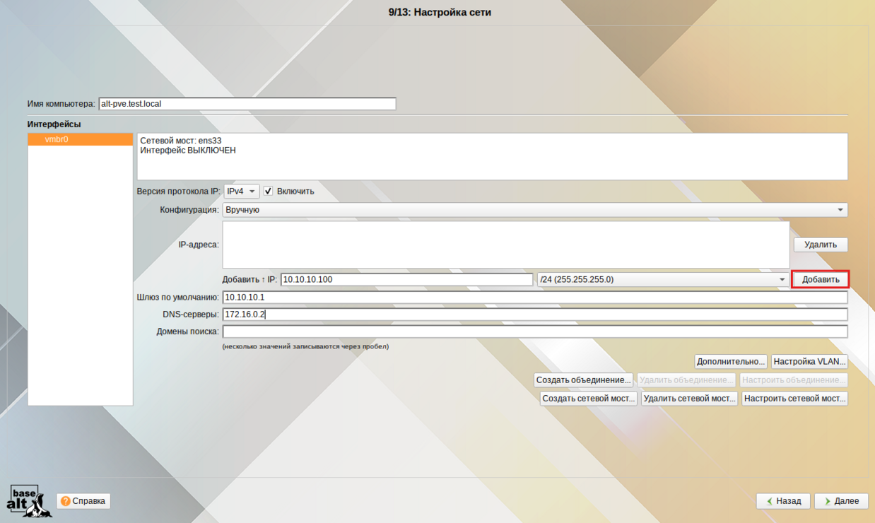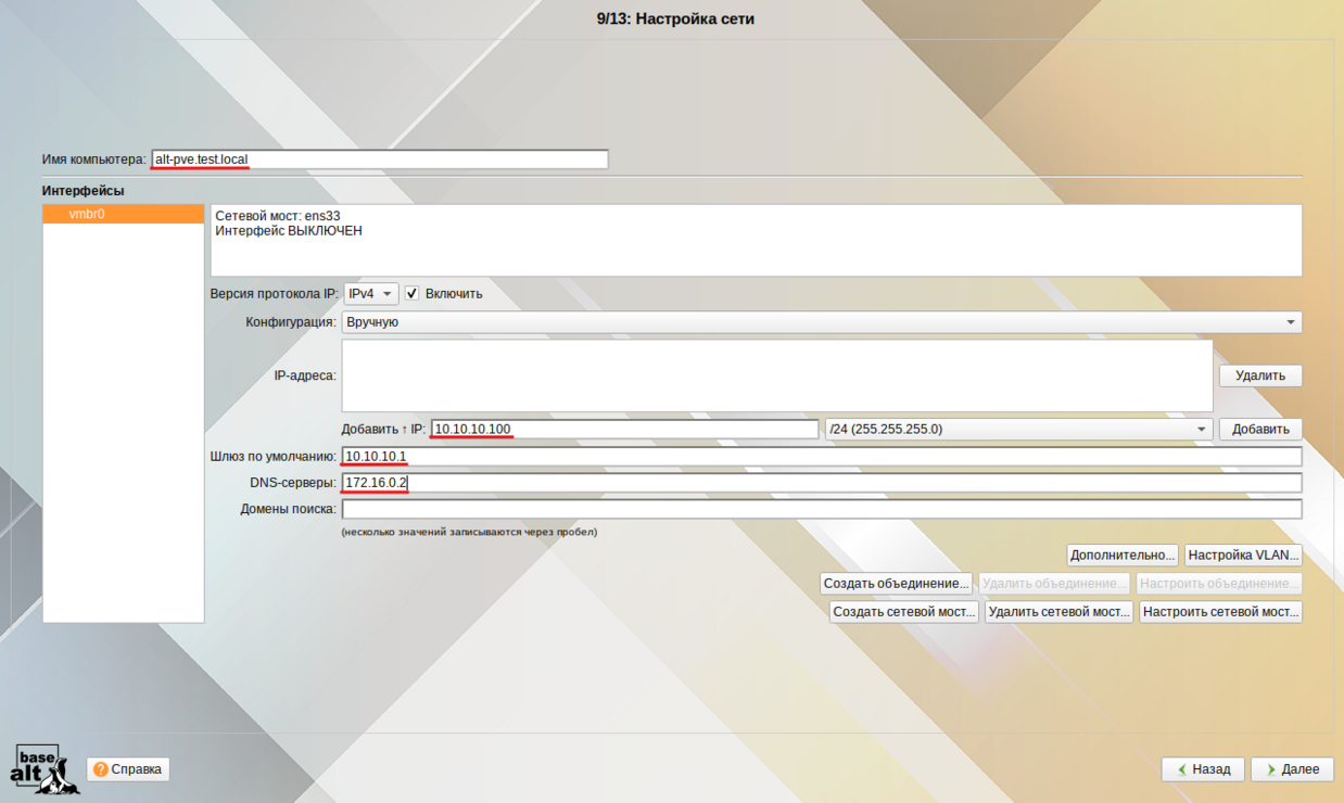 Цель работы: установить и освоить интерфейс ALT-PVE.