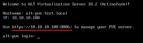 После установки в терминале будет выведен URL по которому вы сможете подключиться к гипервизору:
